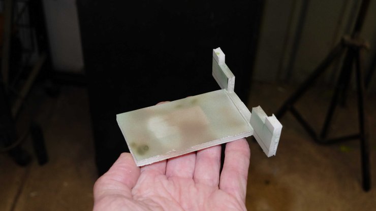 The jig becomes the subject of a day’s modelling in itself as it has to hold a considerable weight in balance. Foam core board is a good material for the construction as it is cheap and easy to cut and join.