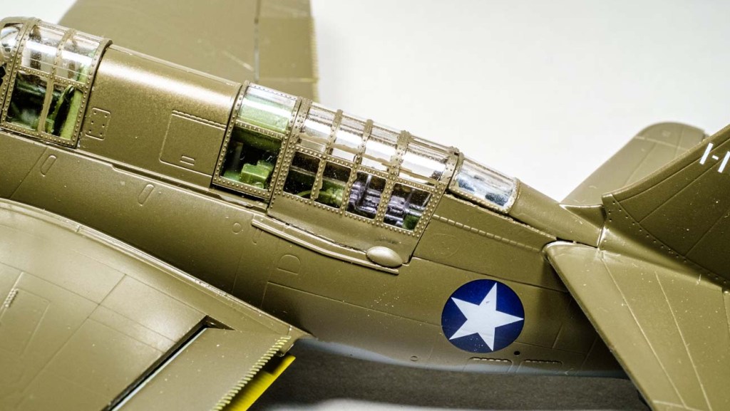 The cockpit area is, as I mentioned, quite detailed. Fortunately the glazing is also very clear so I can leave it closed to resist dust. I chose the twin .30’s over the single .50 but it makes no difference when they are under cover.