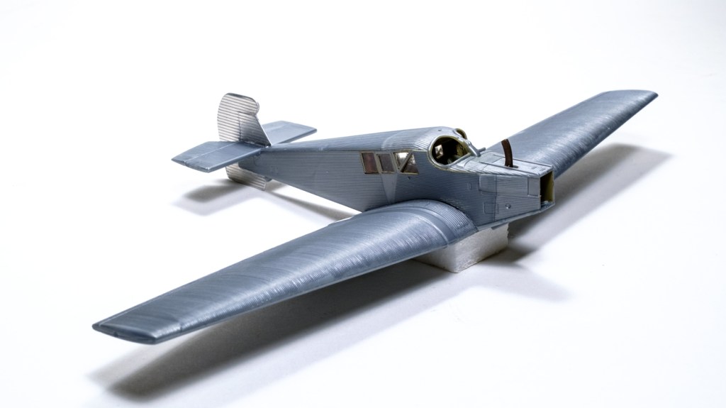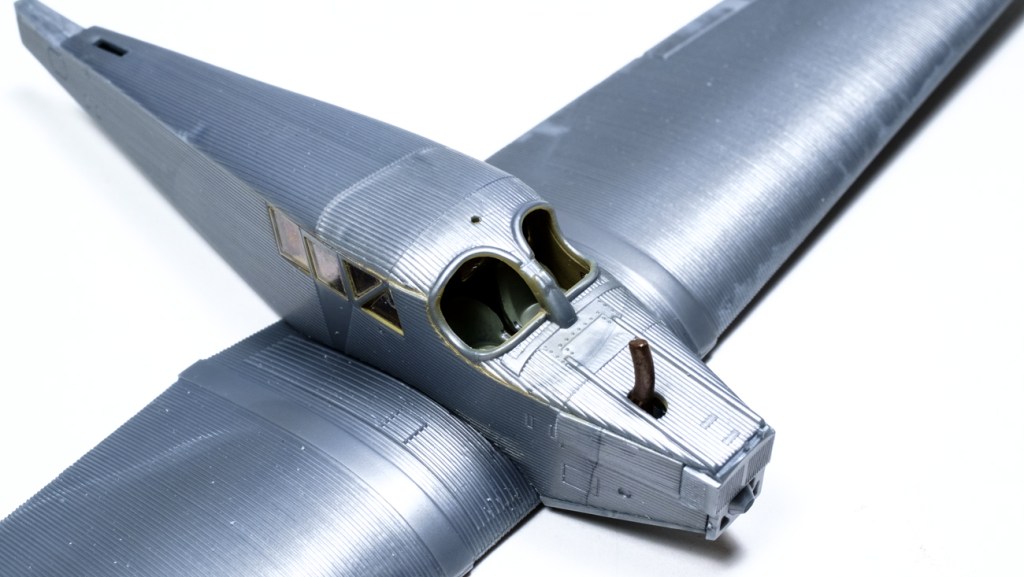And a final salute to the moulders at Revell. The fuselage and wing set together very well with very little filler. And the corrugations match up.