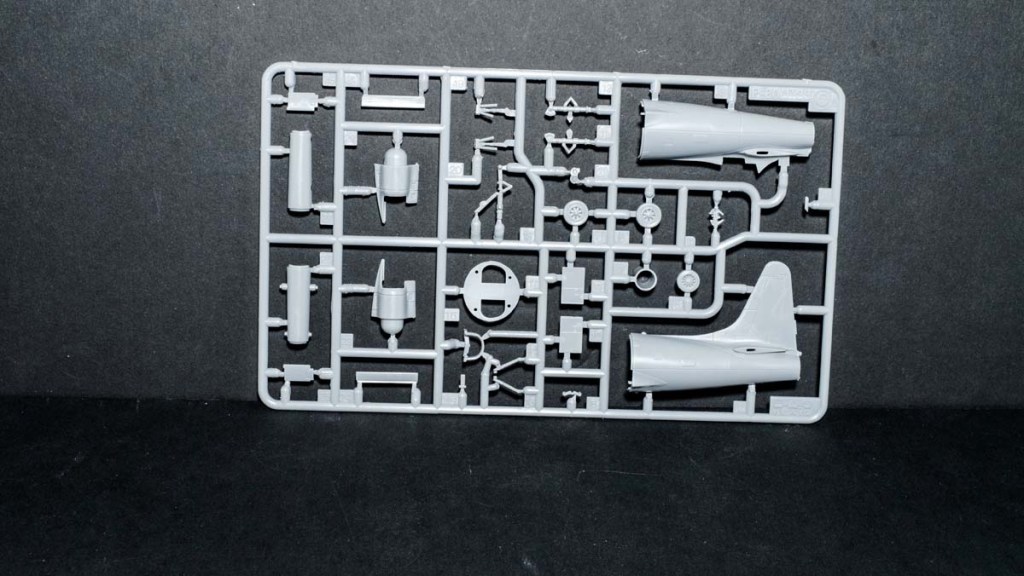 The sprue trees for the Italeri kit are excellent. Clean plastic, polished well. and few, if any, sink marks. As an aside, I do not feel quite the same dismay at sink marks that other kit reviewers seem to – I’ve seen real aircraft with dented panels everywhere.