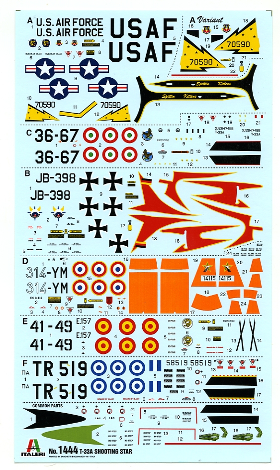 This is the vanilla-flavoured USAF trainer scheme and the various NATO variants. They are pleasant, but nothing like what I want to do. The nose panel and wing walks are useful. Italeri decals bed nicely and rarely need dissolving.