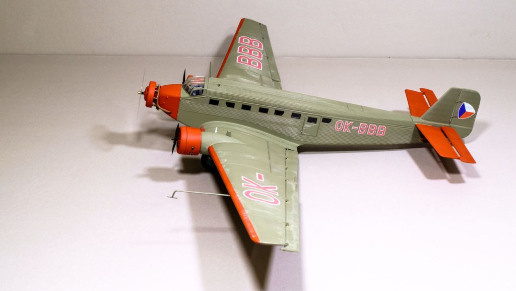 I’m a bit suspicious of the whole story as the same detailed Czech page that lists all the planes used by this service leaves out the Junkers – doesn’t even list it as a Toucan. The other livery choices place the plane with the Air Transport Regiment and the Czechoslovak Airlines at about the same time. I am reduced to thinking that the Czechs should know their own history better than I can guess it, so I’ll just put on the red and grey livery and shut up.
