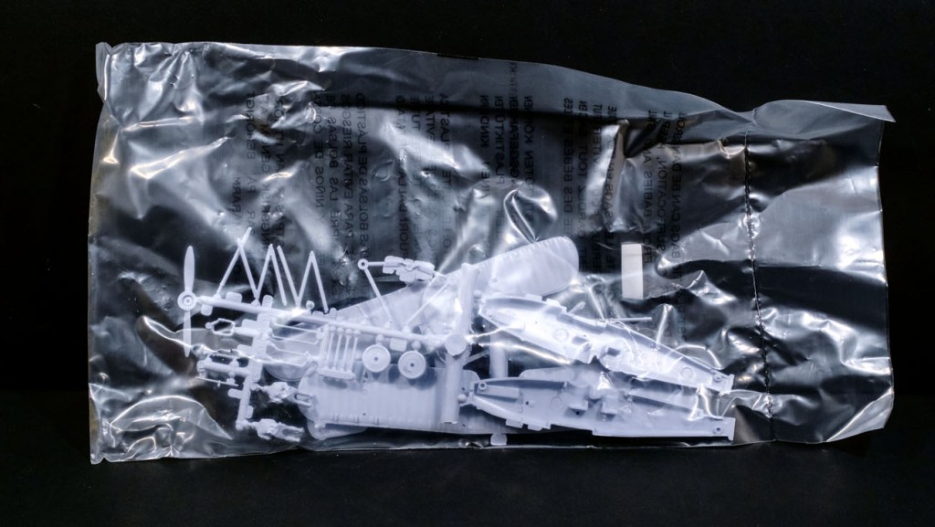 Inside, a bag. And inside the bag a series of sprue trees knocking upon each other. No problem here, as there are no clear parts to suffer.