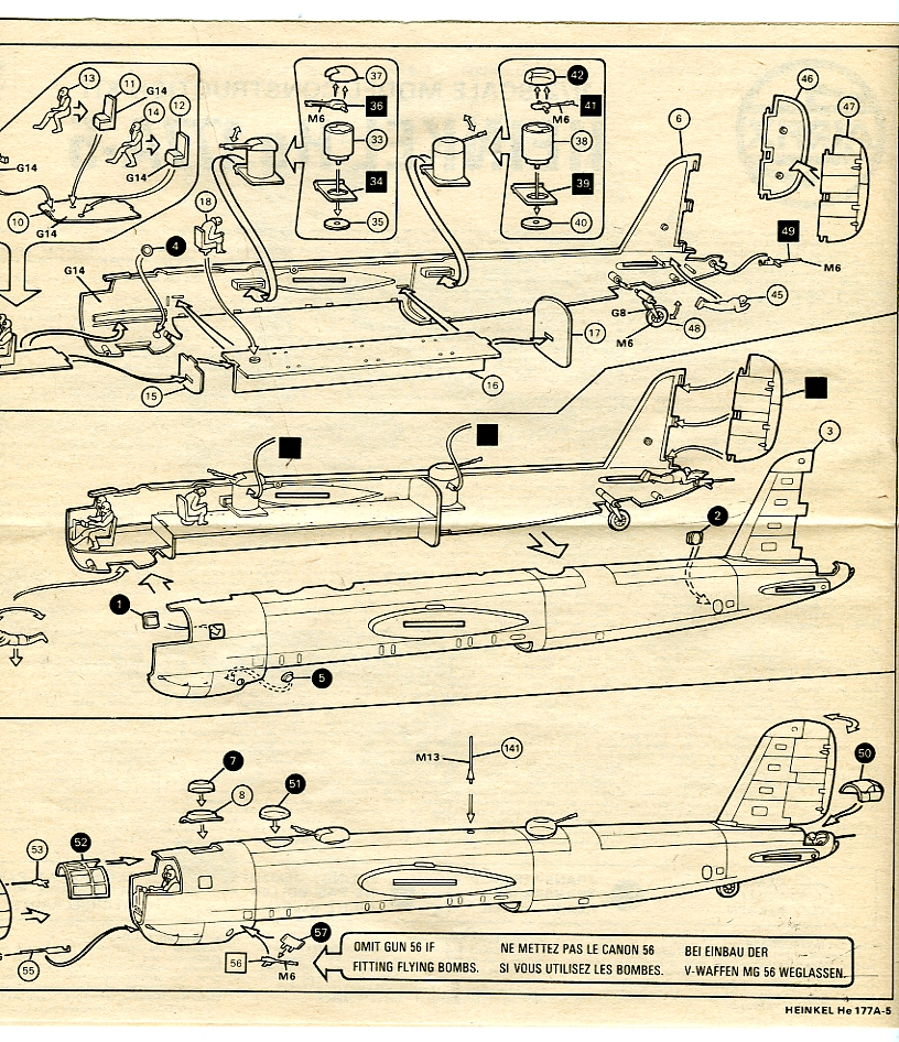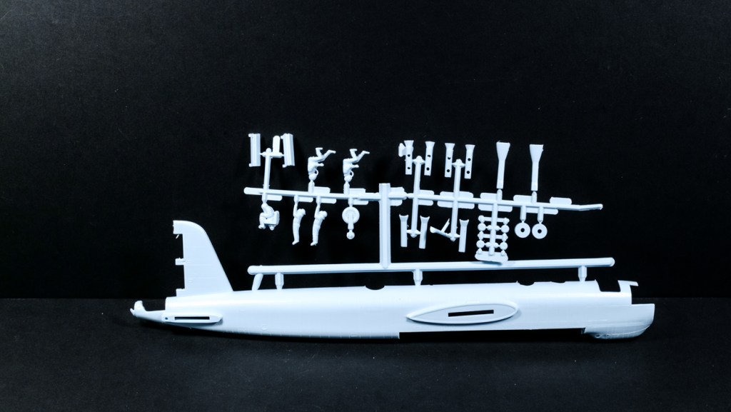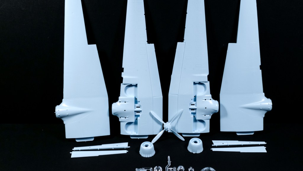 This kit is a model of its time, but a good one nevertheless. I rate it much more highly than the contemporary Airfix He 111, if only because the clear parts fit. The rest of the outfit is ambitious – with three guided bombs – and the whole aircraft promises to be quite a large one when finished. No wonder – it is, after all, a 4-engined bomber – albeit with the engines in two nacelles only.
