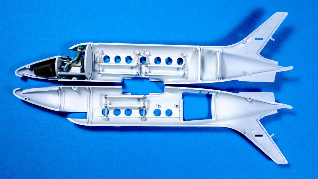 The interior of the Jetstream is going to be built according to Airfix – the novelty of 6 stretchers hanging from the sidewalls of the cargo compartment is irresistible. I am also immensely impressed with the fold-out stairs and the seat that swings out sideways when the loading door is opened.