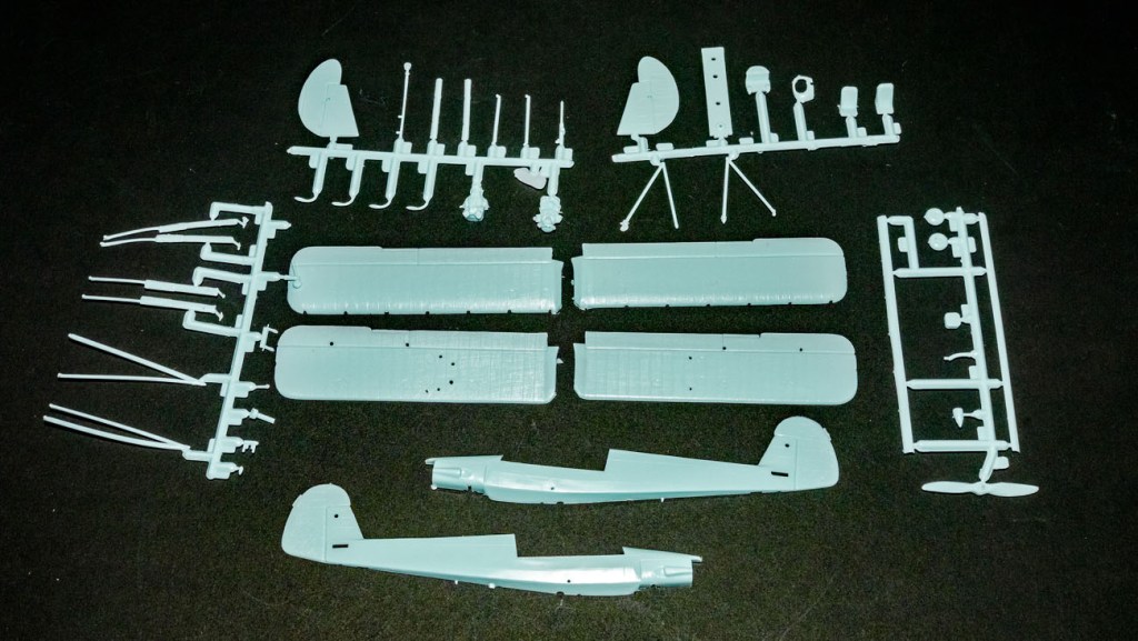 The sprue trees are of the period – flash and distortion is evident. But the basic fuselage halves and wings look quite straight. A little care should see this built with reasonable precision – at least as much as Airfix could incorporate at the time.