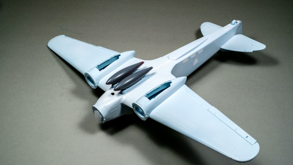 The Heinkel He 111 was a little more work – the upper turret was simple bent sheet of aluminium, but the sterbebette was more work. It just hung out in the airstream and caused drag, and nothing would fair it in. In the end they cut the damned thing off entirely and welded on the wheel well doors off a crashed B-26 as a streamlined housing. This gave more room inside for sacks of mail.