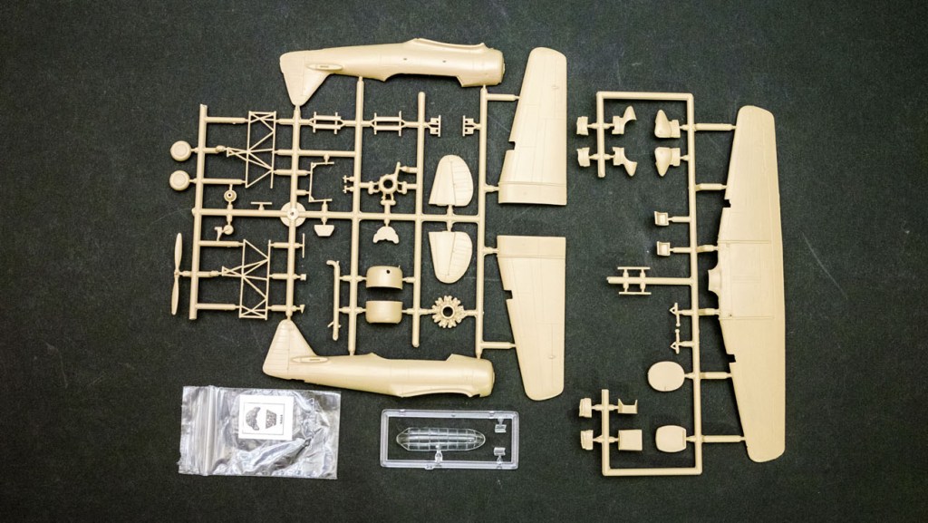 This one packs itself onto two brown sprue trees and a clear shot. I see a detailed tube structure for the cockpit that would be terrifying in resin of PE. The injected parts seem clean and inviting. One can only hope the assembly will go between the fuselage halves with little cutting – those are thin tubes.