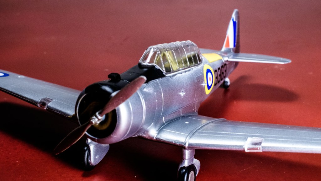 I was as ignorant about this as anyone until I started to make aircraft for RCAF WET DOG. I got away with an all-yellow Harvard and the same style on an Anson ( one in acrylic and one in enamel ) but after that I had to admit that there were black stripes, green and brown camouflage, and any number of silver and yellow patterns. I gave up and just painted what I could see.