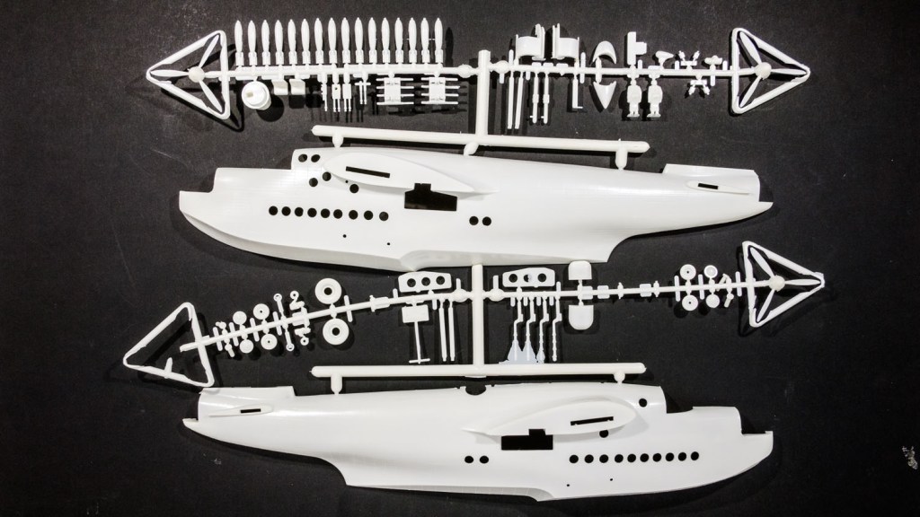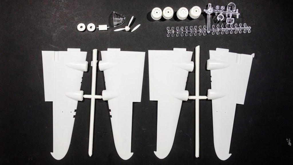 The sprues are large, of course and coarse, of course, but all there. There are sink marks, misplaced locating pins, ejector pillars, and a moderate amount of flash. The turrets and cockpit canopy are clear – but they are also clear of any framing moulded on. One is left to either reference or imagination to know where the supports go. Fortunately there are preserved examples at air museums and reference photos are fairly easy to come at. Oddly enough you have to search darned hard to find the turrets information.