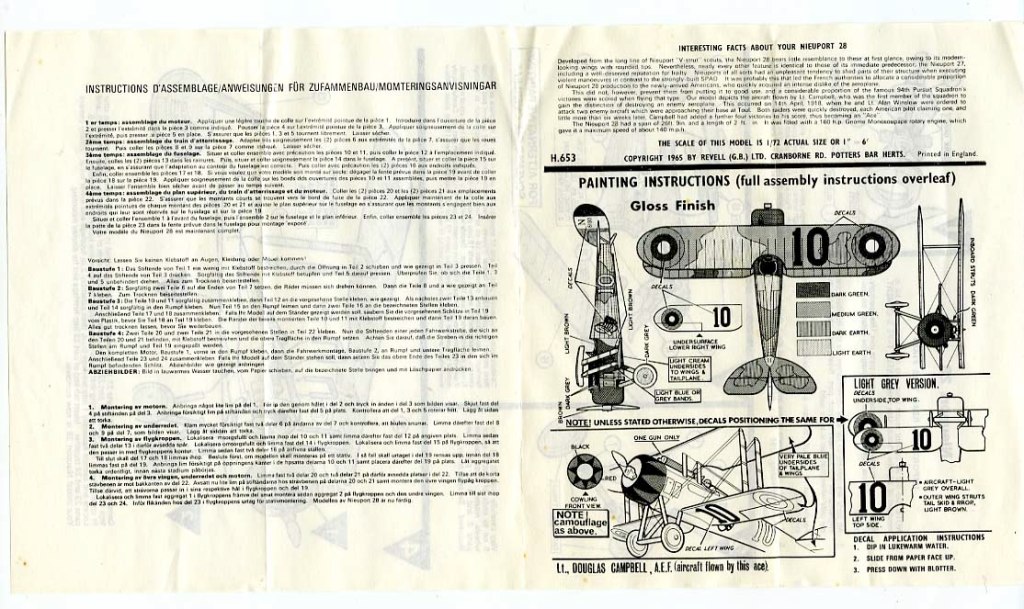 The instruction sheet is Revelly inadequate in some areas and over-detailed in others. The decals are good looking, and seem to have lasted. But they carry with them the necessity to follow the tri-colour camouflage pattern of the time.