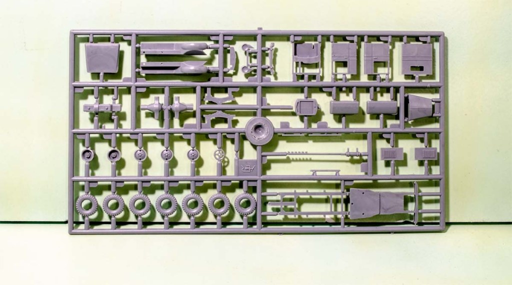 The kit is made by PST, another small Russian factory. They seem to specialise in vehicles, old and new. There are a number of kits of support vehicles from the Soviet era in their catalogue, though whether they’ll get out of eastern Europe all that often is debatable. However, this one was here, now, and nearly complete. The only missing part seems to have been the tiny decal sheet.