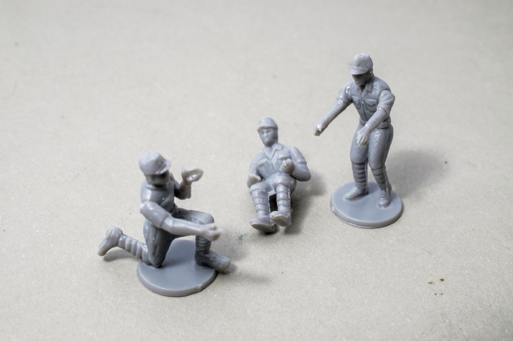 The kit is also a gem in that it includes an airfield trolley with 5 fuel drums and three Japanese soldiers as accompaniment for a diorama. I can only hope my figure skills will improve enough to let me do them justice – I have two more foot soldiers from a hard-plastic Airfix kit who will be perfect for the field as well. Now to see if Zvezda or Model Box do some Japanese officers or fliers…I hate the old soft Heller or Airfix. They were always so near to being good but so far from it as well.