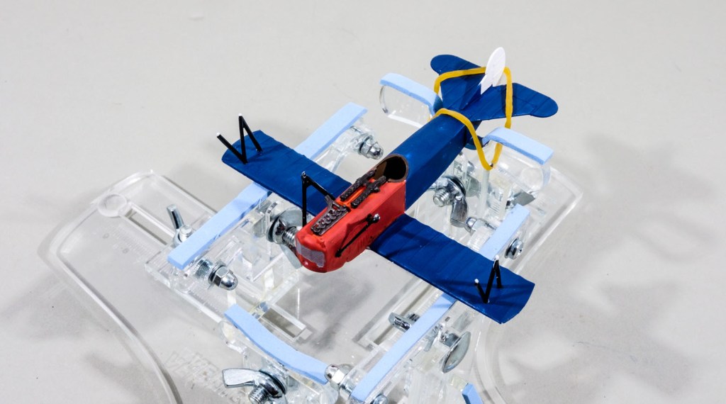 It was not all retro-perfect. I did resort to a computer program and an inkjet printer for the lozenge-pattern decals. I did add little licks from several paint pots that Revell did not supply. And I did poke a few dabs of cyanoacrylate cement in to re-enforce strut attachments.