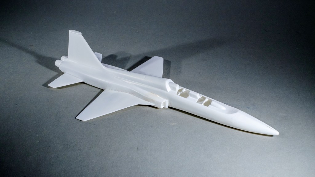 Or you can correct the lower fuselage line and look through from one wing root out the other side. I opted for this as I knew the Mr. White Putty would easily bridge the gaps. Just to be sure I was not fooling myself I reviewed videos of the T-38 taking off and noted the underside.