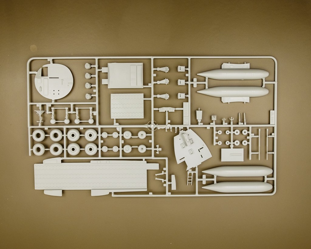 I know it’s going to be a leisurely affair with occasional stops for home air brushing, but I can still make good use of the Tuesday Men’s Shed time for sub-assemblies. The only down side is the repeated transport of the bigger kit boxes to the club rooms. I have to make sure the parts do not go astray. This time I shall be taping some of the completed sub-assemblies to the inside of the box as they are done.