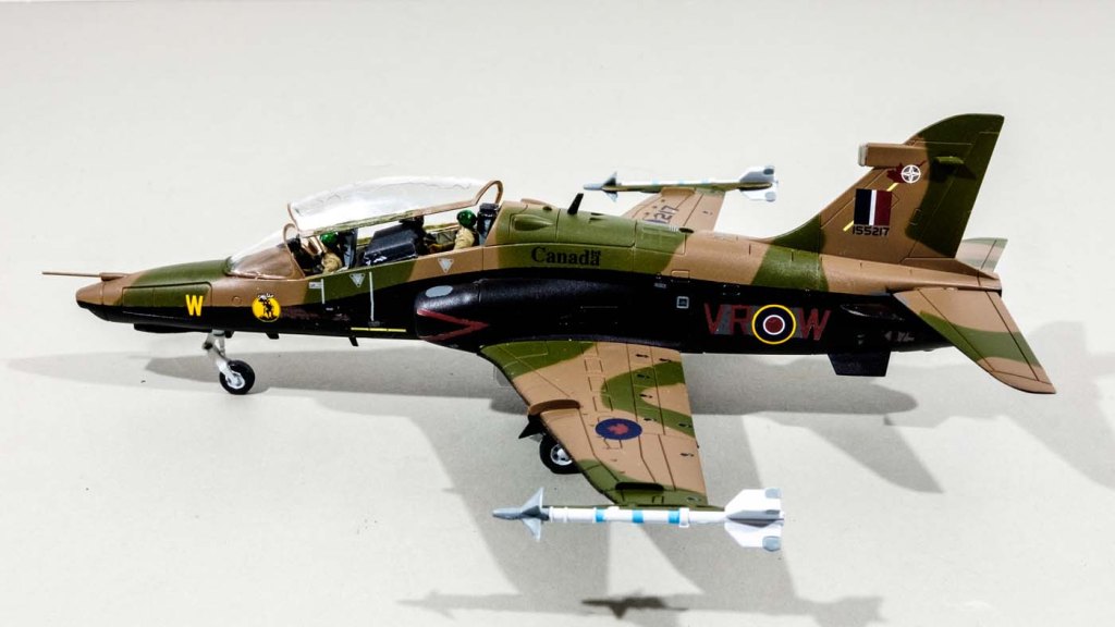 The BAE CT-155 Hawk is on the line at Moose Jaw and the new commemorative scheme is finally done. The stencilling and decaling took two weeks, though this is because it was a club build and we only met once a fortnight. The final assembly was remarkably fast once the components were completed.