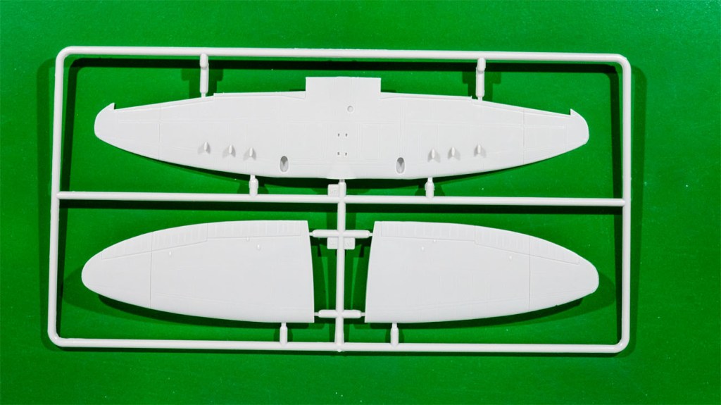 No separate wheels – they were moulded right into the spats. I prefer this, as it means you can close up the gear and paint it, then pick out the tyre rubber.