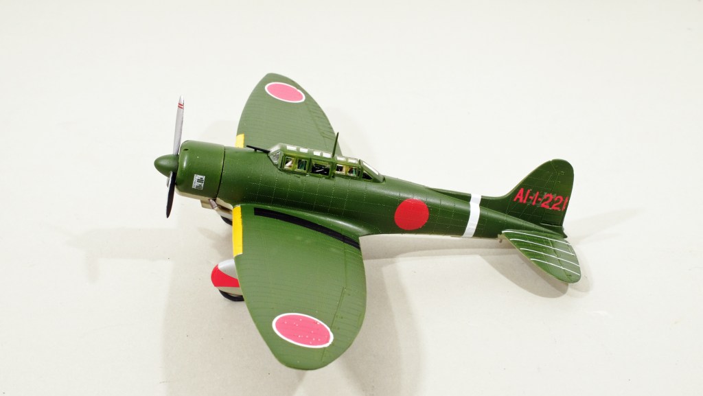 Airfix made one model – it could have open canopy or not, but that was about it. To get to the present aircraft I have had to add wing-bourne bombs, close the canopies, and use the Fujimi IJA decals – as well as reference the cut-off box lid from the Fujimi kit for the green Army scheme.