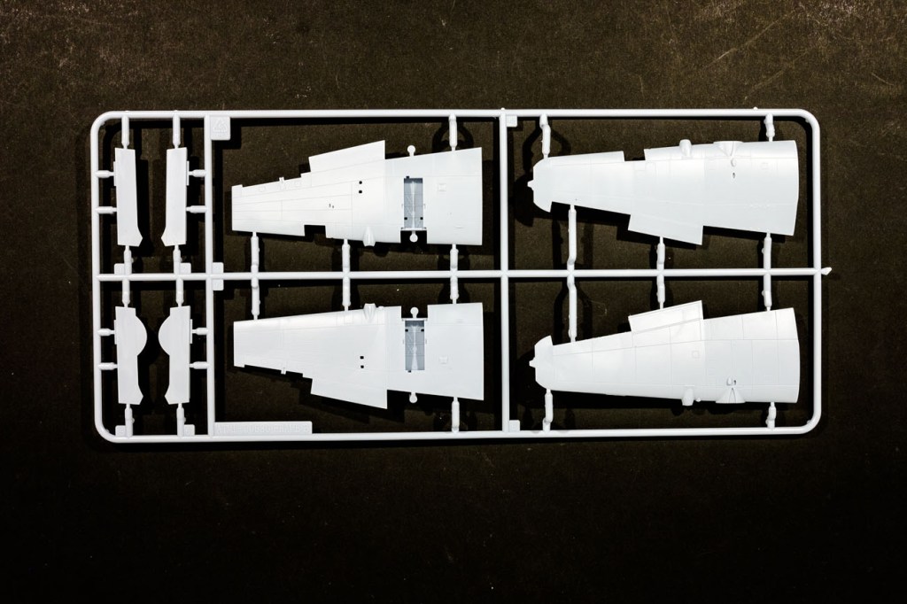 Noted the squashed tyres on the sprue trees, as well as the handed nacelles and tailplanes.