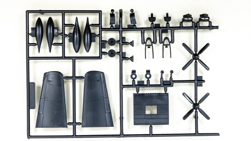 Sprue trees are crisp and hard. Little flash, and sink marks are hard to see on the black plastic. More than enough detail for my purposes and the exact sort of markings and equipage that I want as a contrast to the Alaskan twin.