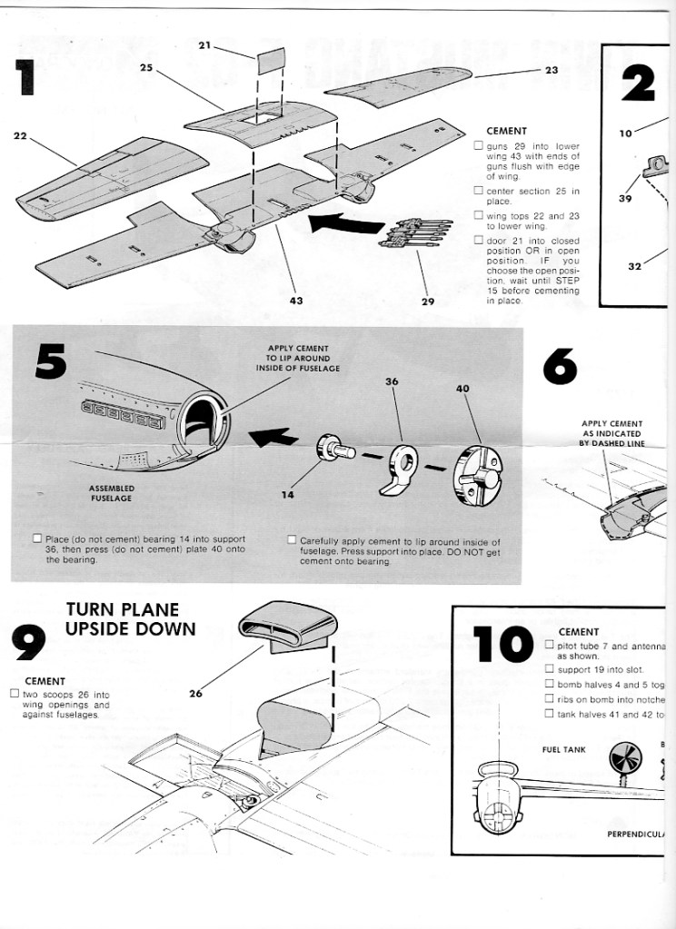 I note the instructions feature a good deal of written English breaking the construction down into steps. As the model might have been aimed at the junior worker, this was no bad thing. Literacy was being fostered as well as fine motor skills. And the instructions were less likely to contain diagrammatic bloopers that would spoil models – this was a day before the internet could be counted on to present actual pictures of preserved aircraft.