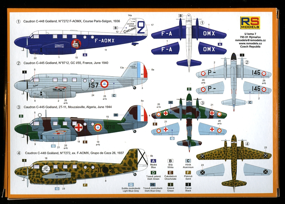 Note the box back and the decals. The scheme choices I gravitate to are the Armé de l’Air types of ’40 and ’44. The four-tone is always a turn-off to do but the ambulance symbols are attractive. Decision later.