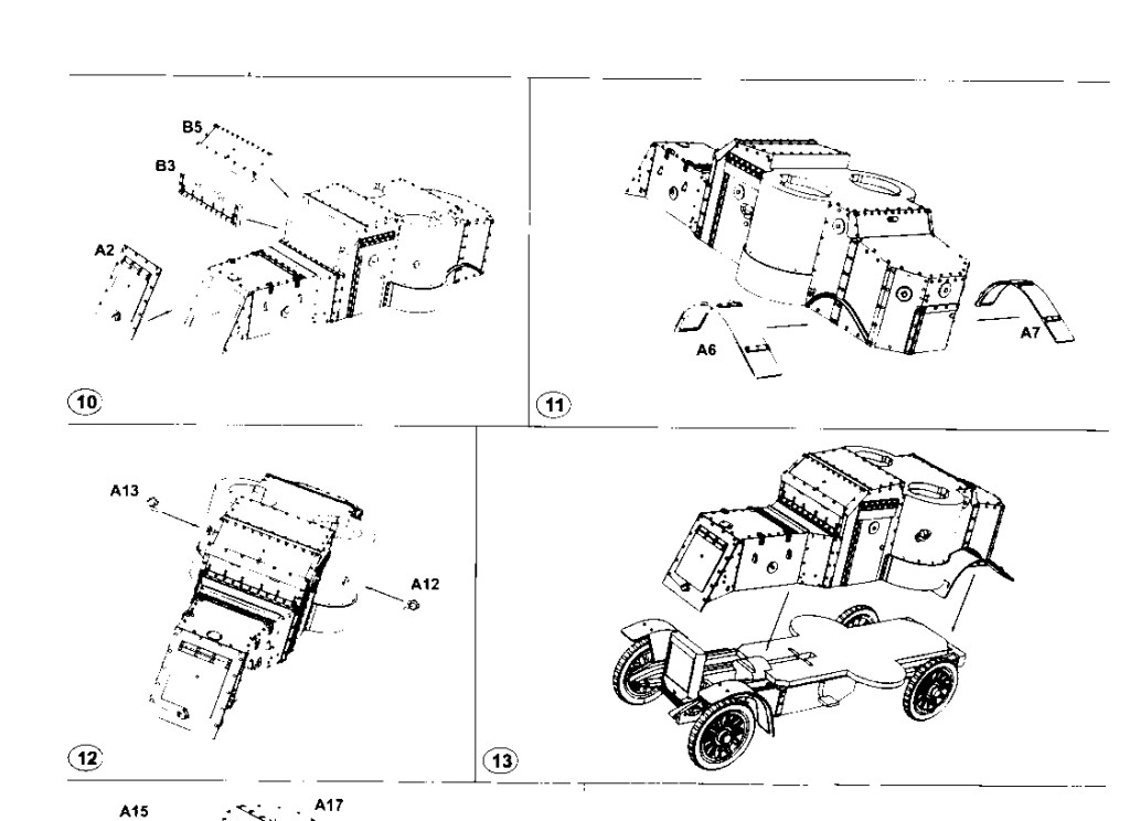 The options for the markings are wide – the car was used in the WW1 and revolutionary periods all over the place. I shall use the Russian decals, even though they are probably those of a White Russian unit. If pressed to it, I can plaster a scruffy red star onto the inscription.