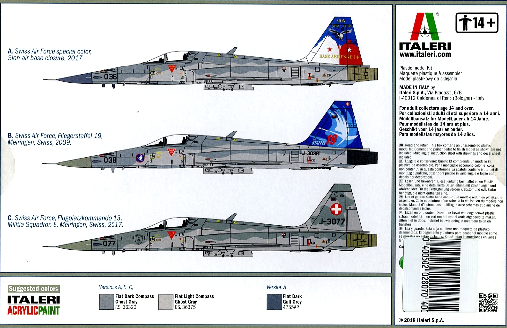 The decal sheet has a couple of florid tail pieces as well as the standard service version. As the Swiss opted for colours similar to the USAF, the greys are readily on hand. They have given in a bit to the stencilling vogue but not too badly.