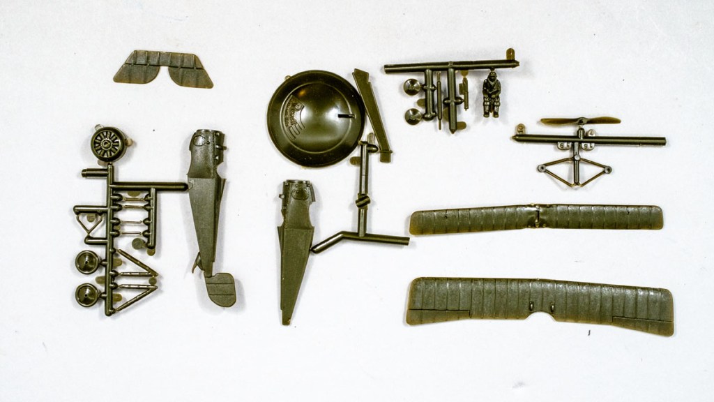 The sprue trees are fragmented in this old kit. It was a 1963 new release – with many repeats – so I am not surprised. All the parts are safe, however, and make it a good bargain – it was an estate sale. The mouldings are nothing to enthuse over – flash and ejector marks being the main problems, but for the very low price it is a fine challenge.
