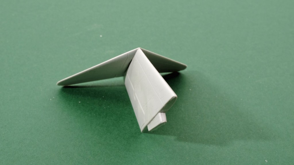 Never mind – the underside will end up being High Speed Silver while the upper is grey and green – the critical joint under the bottom needs to be closer if it is to be filled to invisibility. I do not expect Tamiya seams, but I’ll need to practice old-school skills with the joins.