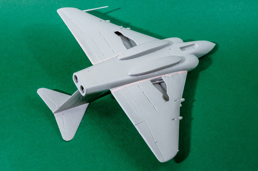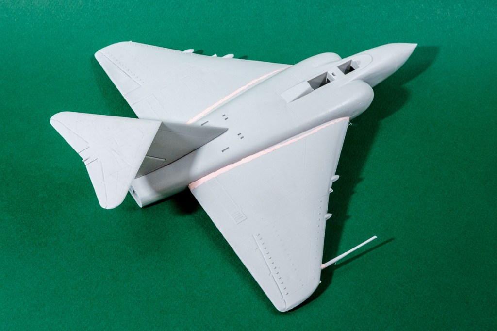 Today was a trial run for the goo – and as you can see from the illustrations it sunk deeply into that shameful gap in the wing. And it adhered – no secondary cracking. It was easy enough to trowel in with a small metal instrument and a sharpened cocktail stick. It set overnight and sanded just like regular styrene. And it cost fractions of a penny to do. Win.