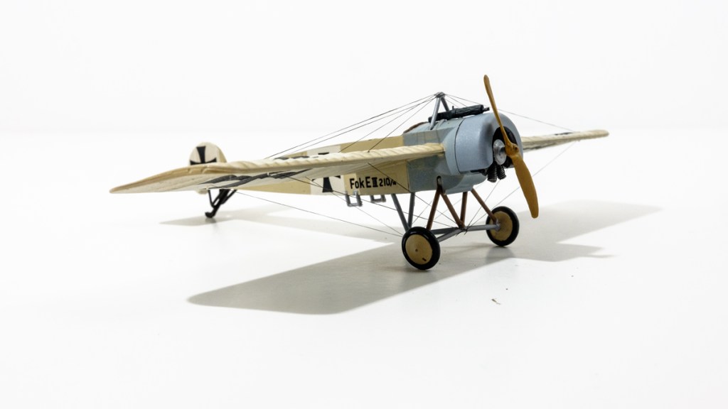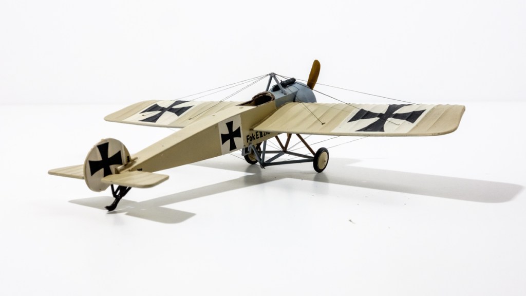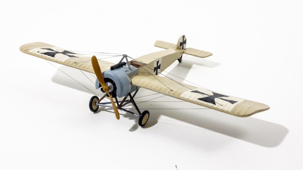 The kit built beautifully – square and plumb – and the decals went on superbly. It will be a good companion for the Morane Saulnier N in the WW1 hall. I would like to find a Bristol monoplane as well.