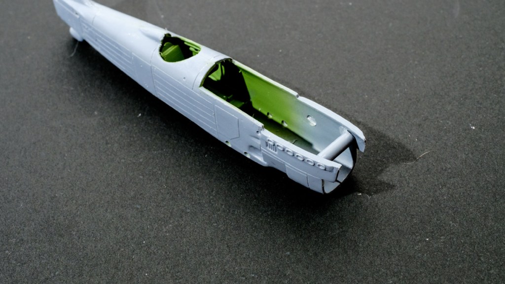 The fuselage fit is superb, but the moulding has induced stresses that close the engine compartment excessively. A sprue plastic brace in there was needed to bring the panels back into line. First time I’ve ever done it, but it worked.