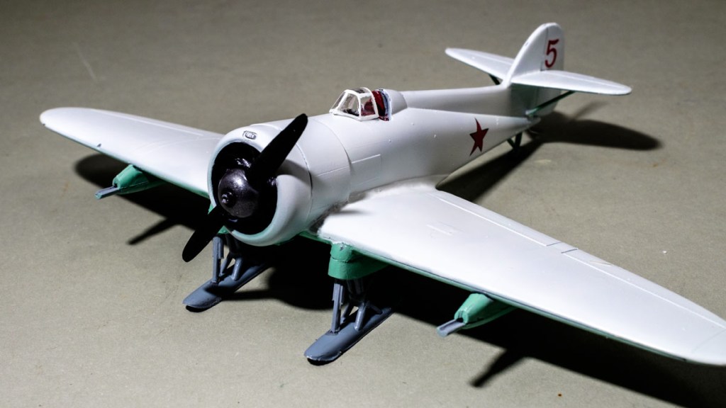 The skis are a novelty, but so is the white winter colour scheme. I like white aircraft – Coastal Command and such – and the two other Soviet winter ones in the collection look very good. I cannot decide the exact Soviet light blue for the underside…and the internet is no help with this either. So I have a small variation in the collection, figuring this is as accurate as it would have been anyway.