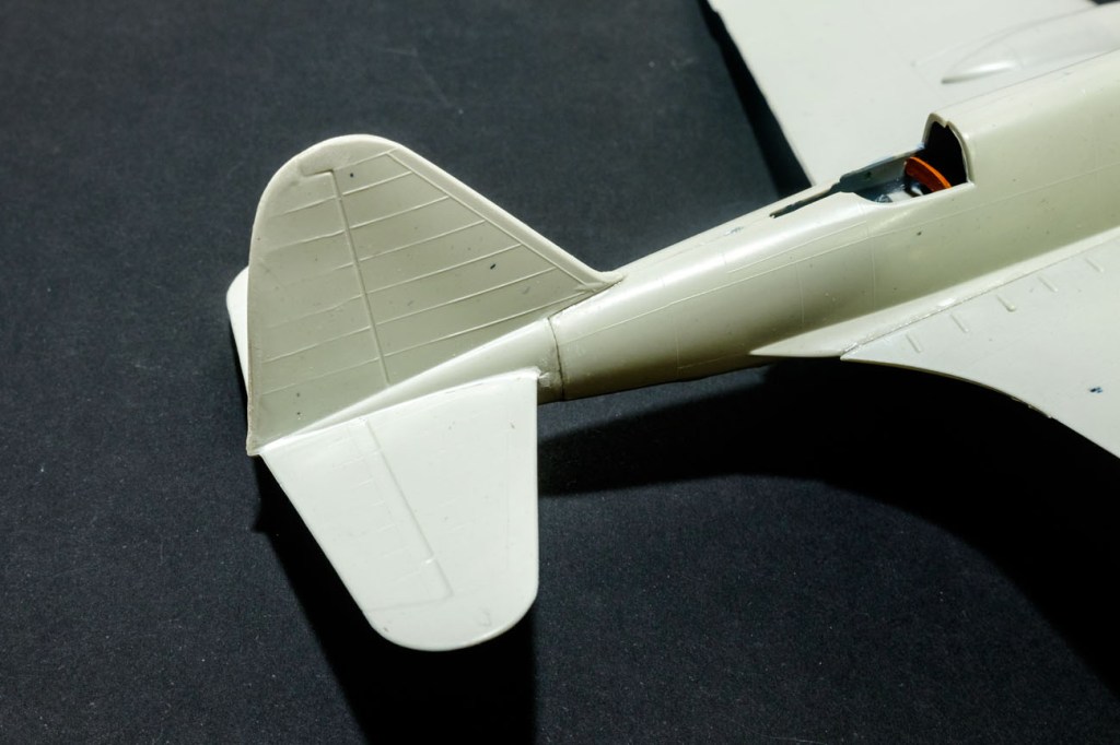 The wings also have deep grooves on the fillet joint top and bottom – my normal practice is to minimise this on the top and save the hard filling and sanding for the underside . Note the relatively wide nature of the wing and the amount of fuselage it needs.