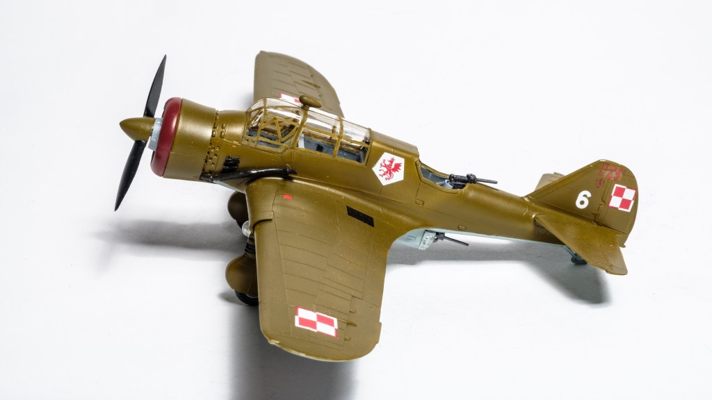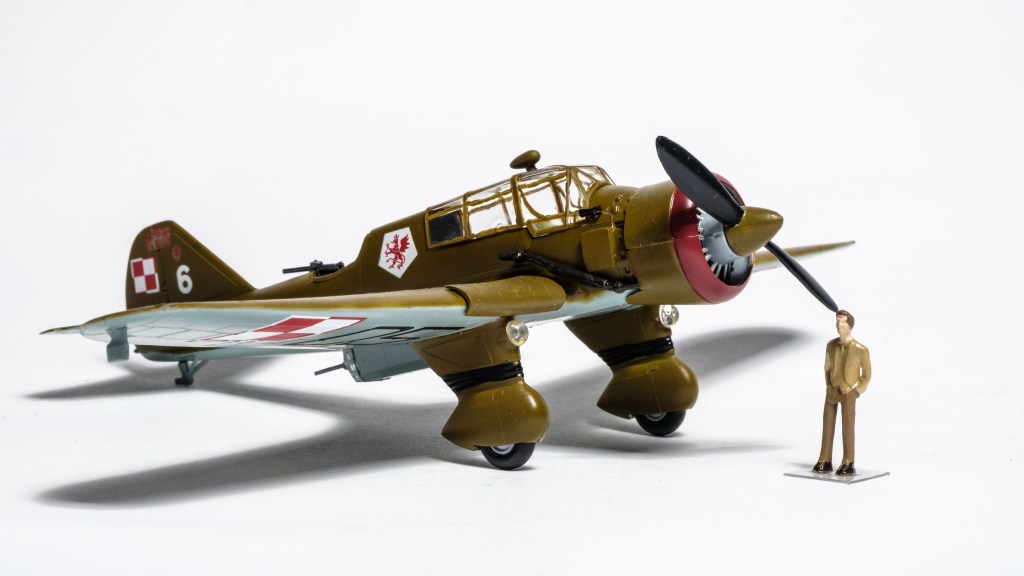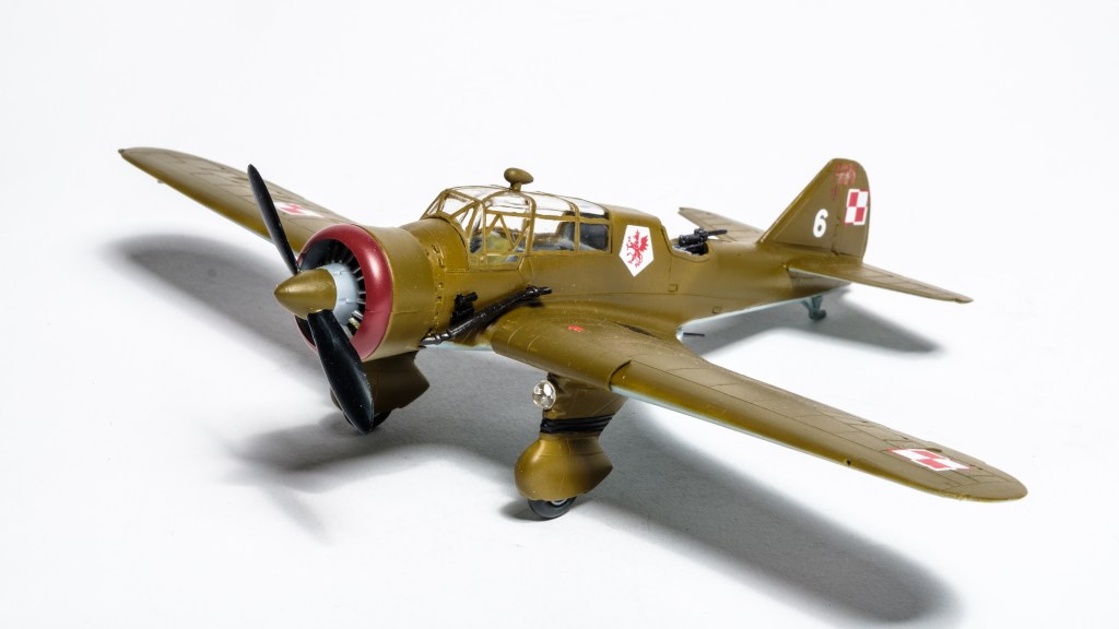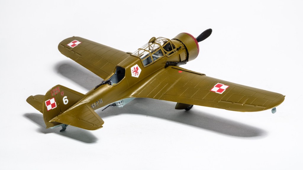 The characteristic cowling shroud for the radial engine seems to be a part of many Polish aircraft. I quite like it as it gives a corporate image to the section. Note the big and wide propeller. Also note the ventral gun – not a feature of many dive bombers.