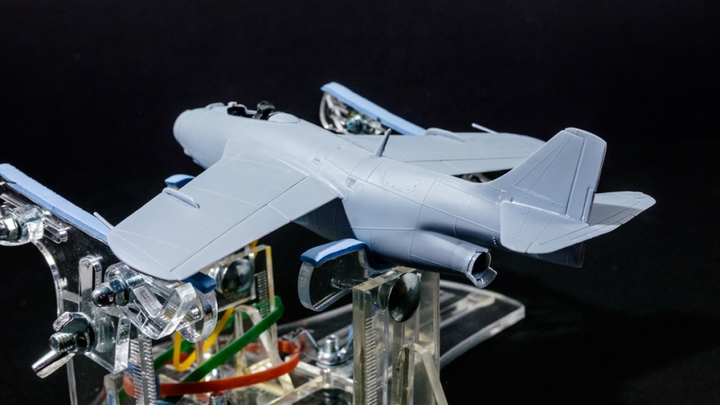 The rest of the aircraft is a superb fit. The cockpit tub has three big location lugs and they are precise enough to put it in the right position easily. The tail snaps in to locating holes – the shape of it reminds me a lot of the Douglas Skyhawk. But the entire rest of the design is really a Messerschmitt P.1101 moved north.