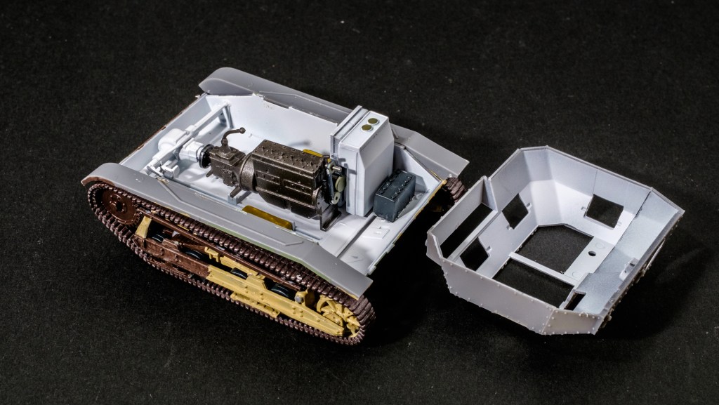 The tankietka is progressing well – there are a few inadvertencies in the track work caused by mis-reading of the photo instructions, but they are for the most part hidden. The interior is going down so nicely that there is a strong temptation to model it with hatches open. The fit of the parts is exemplary – so little trimming is needed I am inclined to think that when it occurs I have done something wrong myself.