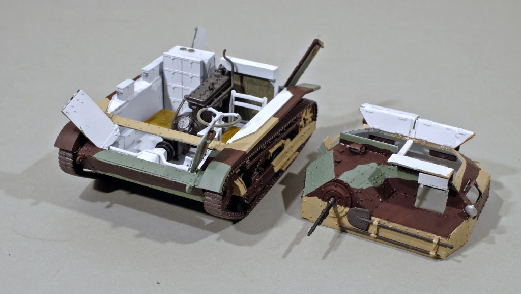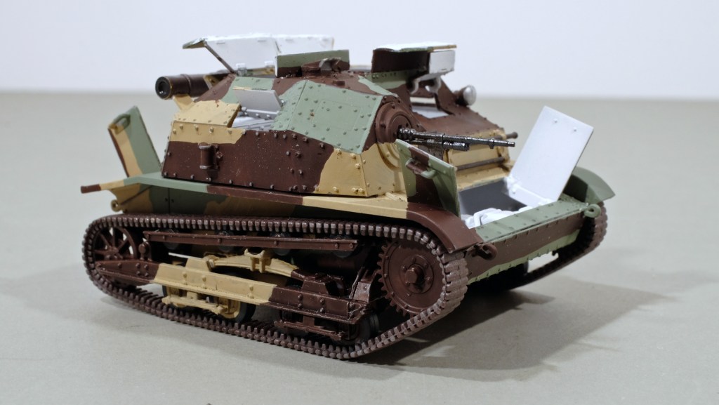 Was this a fearsome battle machine? Well probably as fearsome as the Polish armoured car I built a few months ago. If they potted you with the 20mm Hotchkiss while you were in a plain lorry that would have been deadly enough and if they ran over your foot with the track it would have been just too bad. Think of it as a Bren-gun carrier with a tin box on the top.
