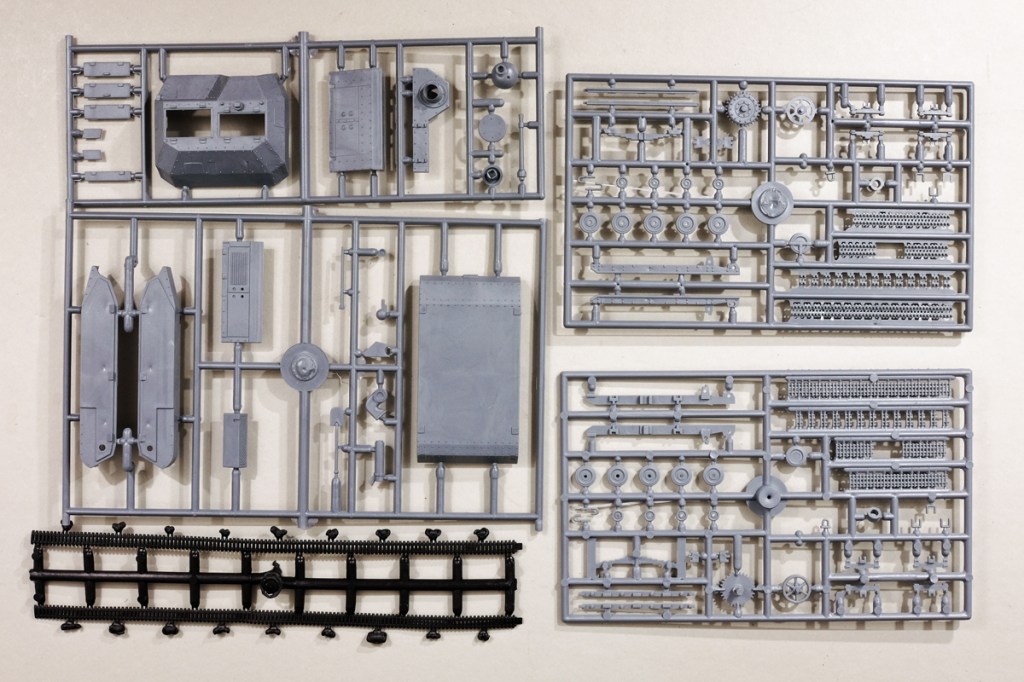 I note, as well, that the track-work of this model is supplied either as a vinyl band or separate injected plastic parts. No idea yet which will be the best choice, but the basic hull can be well along before I need to decide.