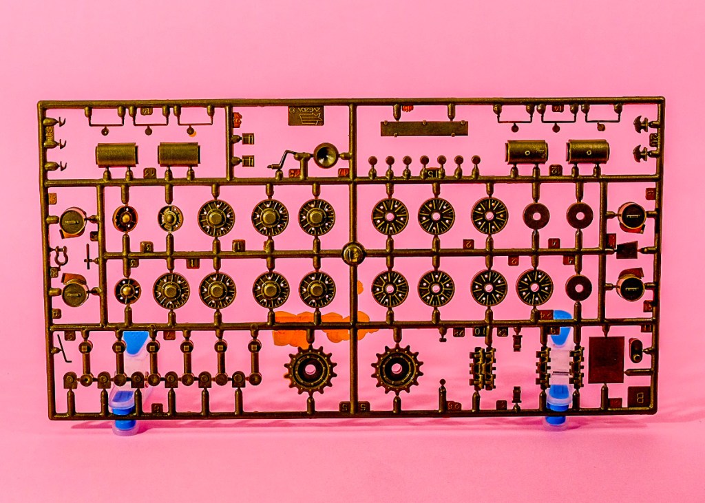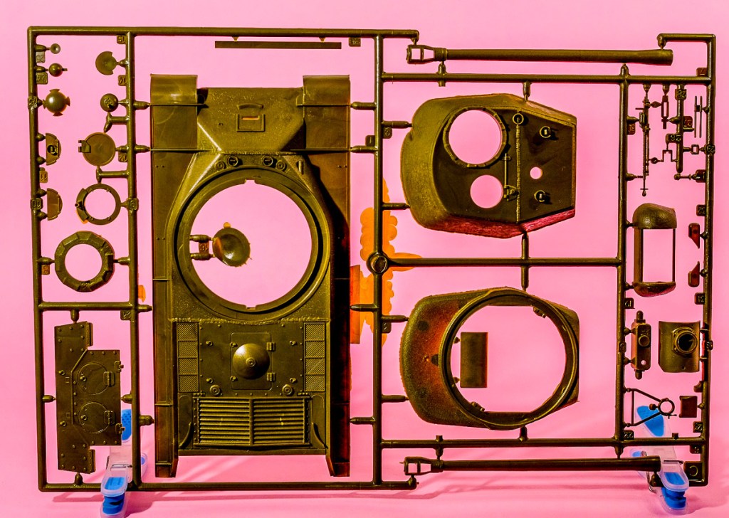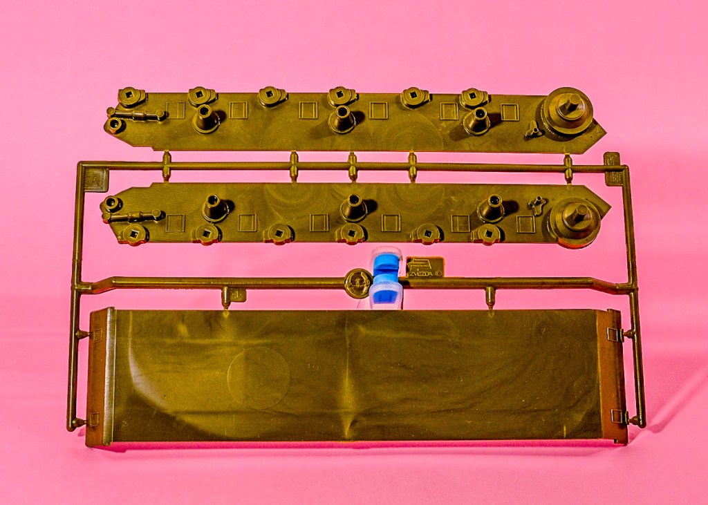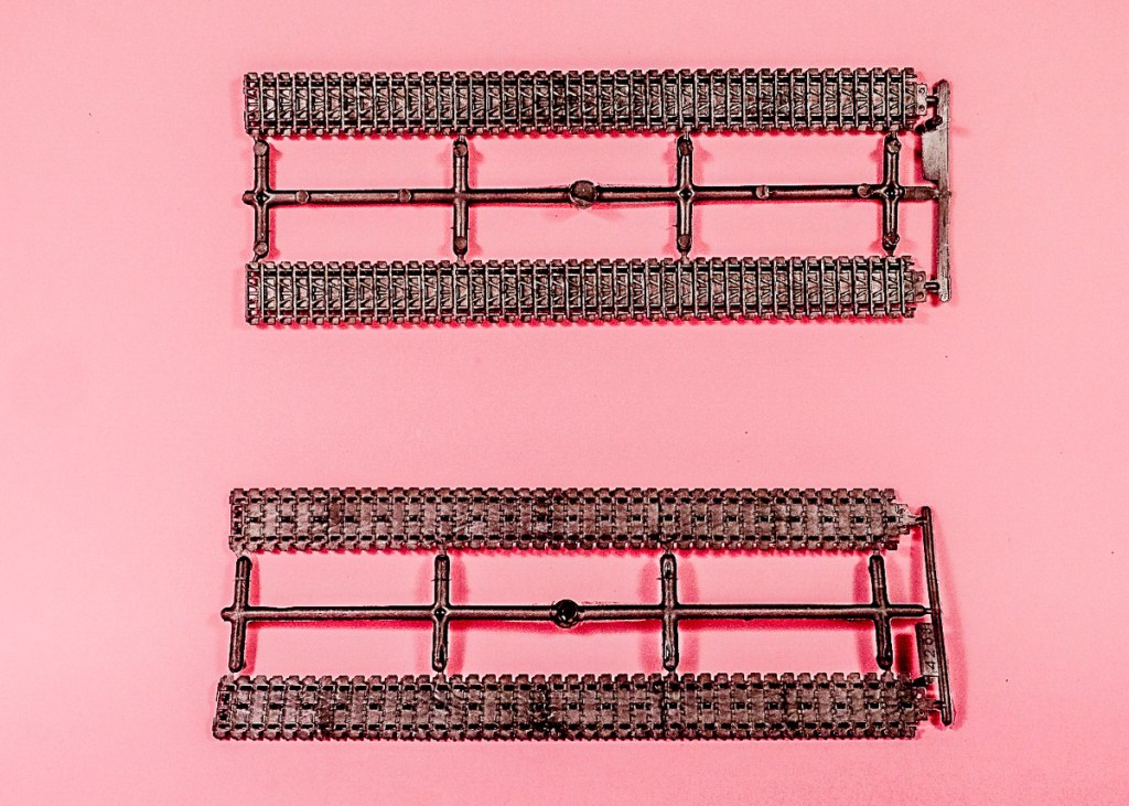 Well the sprue trees are flashy, but complete. Two wheel and accessory ones that are identical , plus a big top and small bottom tree. The tracks are flexible vinyl of some sort – not as detailed as some I see built at the club but more than enough for what I am going to do to Uncle Joe.