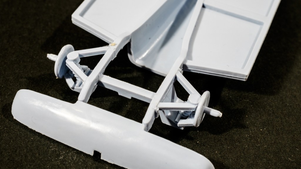 The front suspension is more sophisticated, with top and bottom arms. The actual mechanics of the Airfix model are suspect, but a dirty paint job under there will hide the improbabilities. And if Airfix do not want to provide a tie rod, I will not remain discreetly silent.