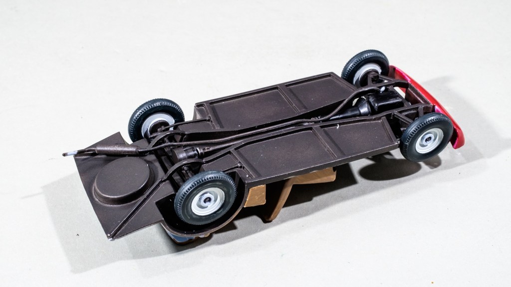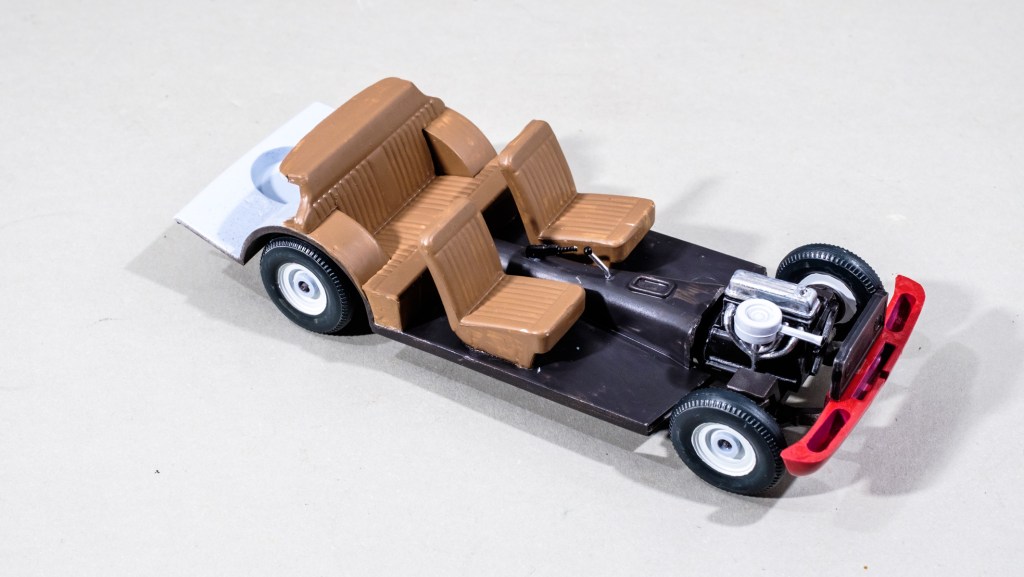 The Herald chassis is square and plumb straight out of the packet, and this is all I ask. The hubcaps will be chromed with a Molotow pen and the rubber window seals painted on with a Posca pen – both ideas courtesy of Phil Flory and his forum. The interior has a headliner and inner-door paint based on Google images.