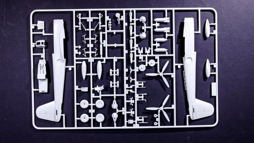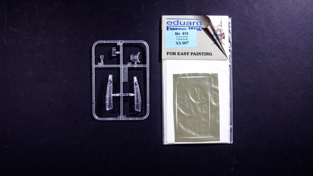 The kit was in a stash sale by a friend and he kindly reduced it slightly to me. It was unboxed – but he had the front and rear cardboard of the Italeri package as reference. Also an Eduard masking set for the canopy and wheels.