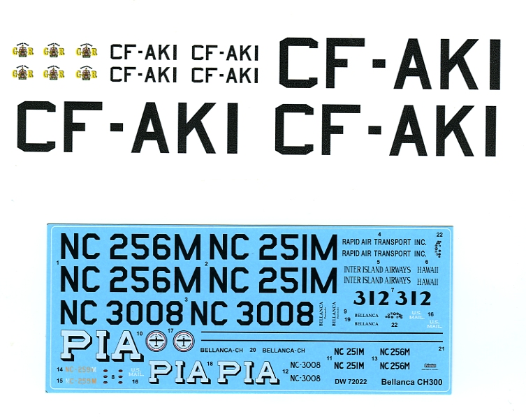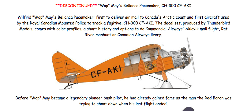 The decal sheets and colour call-out would yield a Hawaiian inter-island plane or an air racer, but my ambition is a Canadian bush plane. I turned up a clear picture of CF-AKI as it was delivered to Wilfred May in Edmonton in the 30’s and it will be the basis of the build. The plane sat on various things in bush service; wheels, floats, and skis appear in various photos. I fancy the wheeled version as it was used for a Royal Mail plane by the Canadian Post Office and has a national crest and ” GR ” logo on the side.
