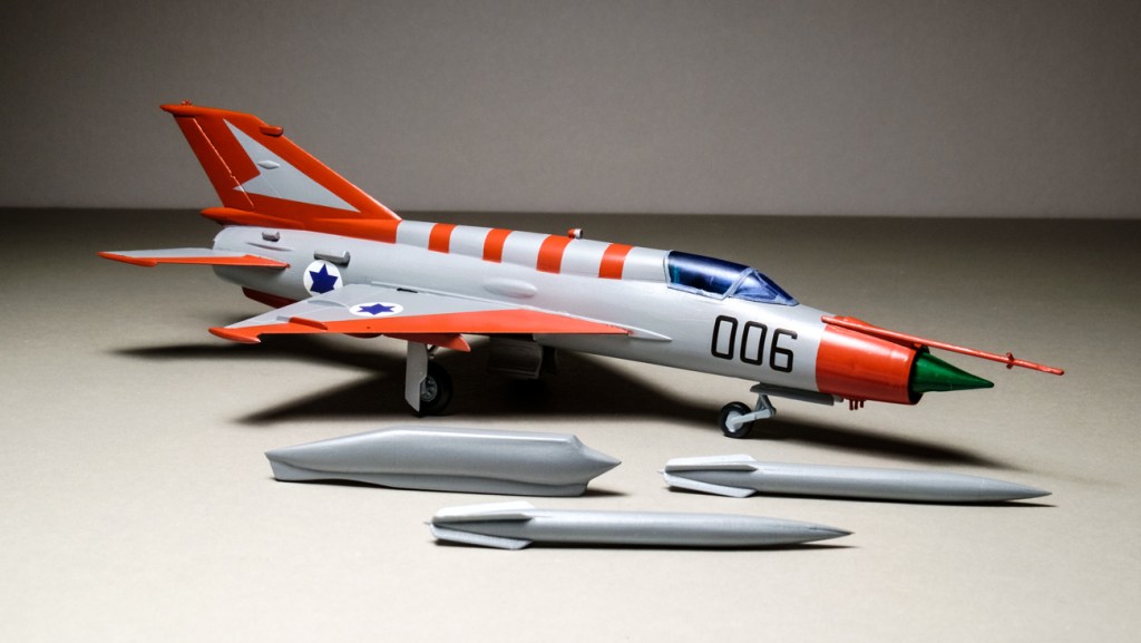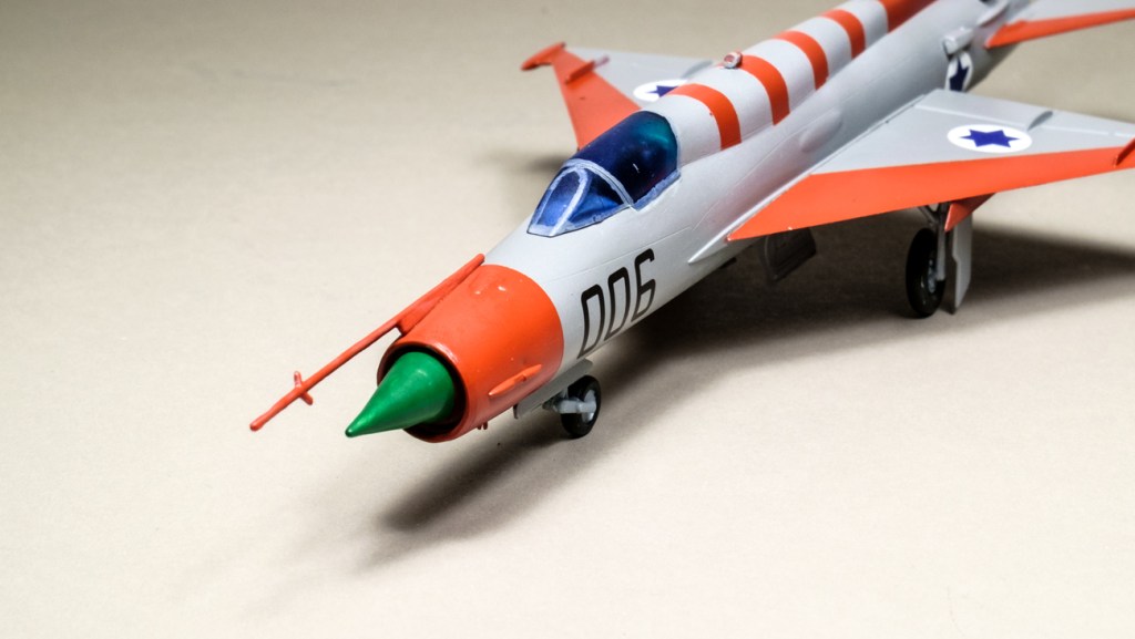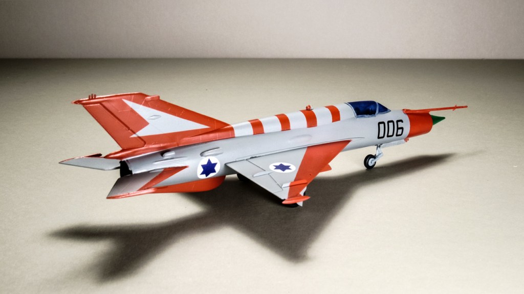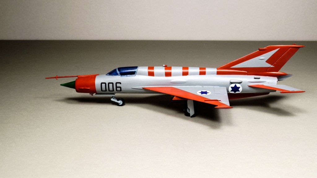The real Mig 21 that was pinched got a thorough working analysis from the IAF before being consigned to Hatzerim. It wore several liveries after the Syrian brown camo was scraped off – some of them quite plain. But in the end it was given a paint scheme very like the one you see on 006.
