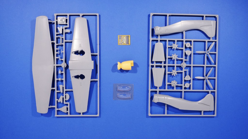 It’s pure Valom short-run, with resin, PE, and vacform as well as the injected parts. Mould polish is not too high, but the inscribed panel lines are done neatly. The fuselage moulding is heavy, and I have hopes that it will be free of warpage.. The landing gear and wheels are on the crude side, but this is no new phenomenon.