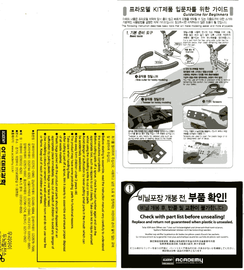 I am not sure if the Academy company regards it so – in fact I am astounded at the amount of superfluous advice they have sought fit to include in the kit. It’s only a small box, but there’s a lot of paper in there. I am grateful that they have shown me how to use a pair of plastic cutters properly – heretofore I had been using my nose to operate the shears and it doesn’t half make your nostrils sore when you do a big kit. I should be a lot more comfortable now.