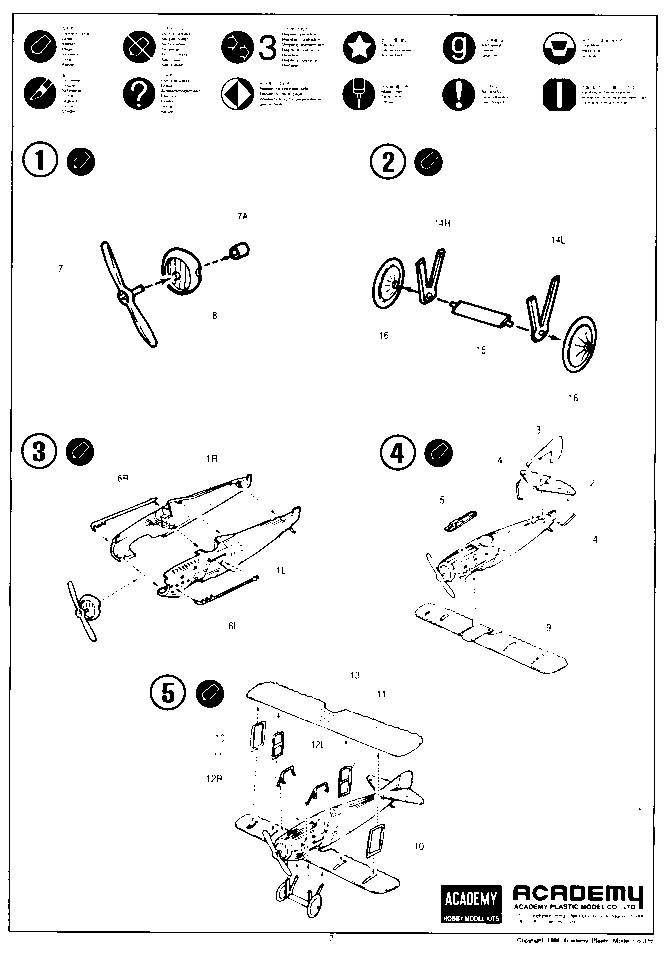 The actual instructions are commendably brief and to the point. The decal sheet seems basic, but as I plan to make this model in Italian colours, it can be saved for a Lafayette Escadrille airplane later.